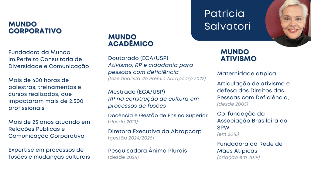 Diversidade, comunicação e liderança inclusiva, com foco em deficiência e maternidade atípica.